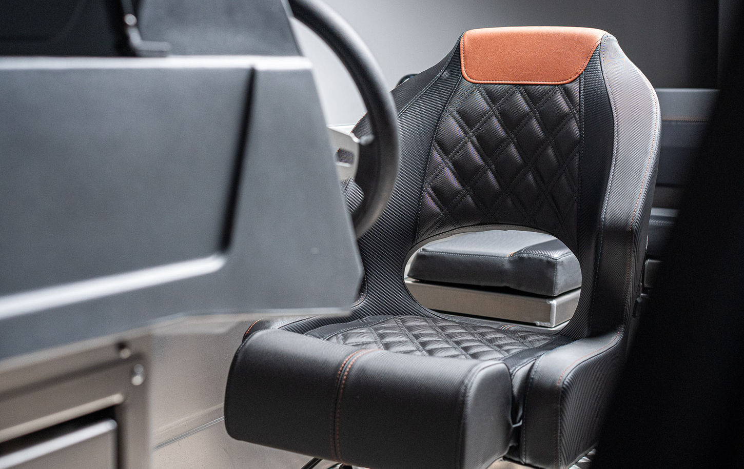 Den svarta och röda V MAX-designen på kåpan har uppdaterats och fått ett ännu mer aggressivt utseende, vilket garanterar välförtjänta uppmärksamhet. Det ikoniska färgtemat för V MAX går igen i skrovet, och ger ett sportigt och enhetligt utseende. Standardutrustningen på Buster XXL V MAX Edition inkluderar en 16” Buster Q pekskärm med Entertainment-paket, Comfort- och Canvaspaket samt vattenskidbåge, allt för att göra dina båtturer extra sportiga och bekväma. Färgpanelen följer V MAX-designens färgtema och det går även att få skrovet målat.