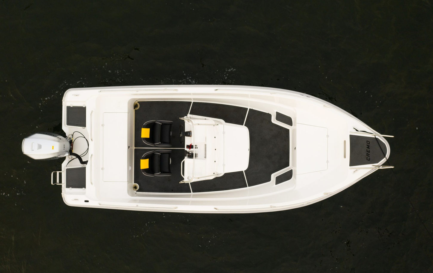 Rejäl, rymlig och tuff i alla väder. Sådan beskriver våra kunder den största båten i CREMO-familjen. Här är båten som bjuder in till större äventyr. Det vassa skrovet plöjer vågor smidigt och stabilt, också när vinden tar i. En genomtänkt design med centrerad styrpulpet, sittplatser för flera och smarta stuvfack som rymmer fikakorgen, badkläderna och fiskeutrustningen. De rostfria grabbräckena bidrar till det sportiga och inbjudande intrycket. Med 650CC är det fritt fram att upptäcka och utforska nya platser och tryggt återvända utan problem.