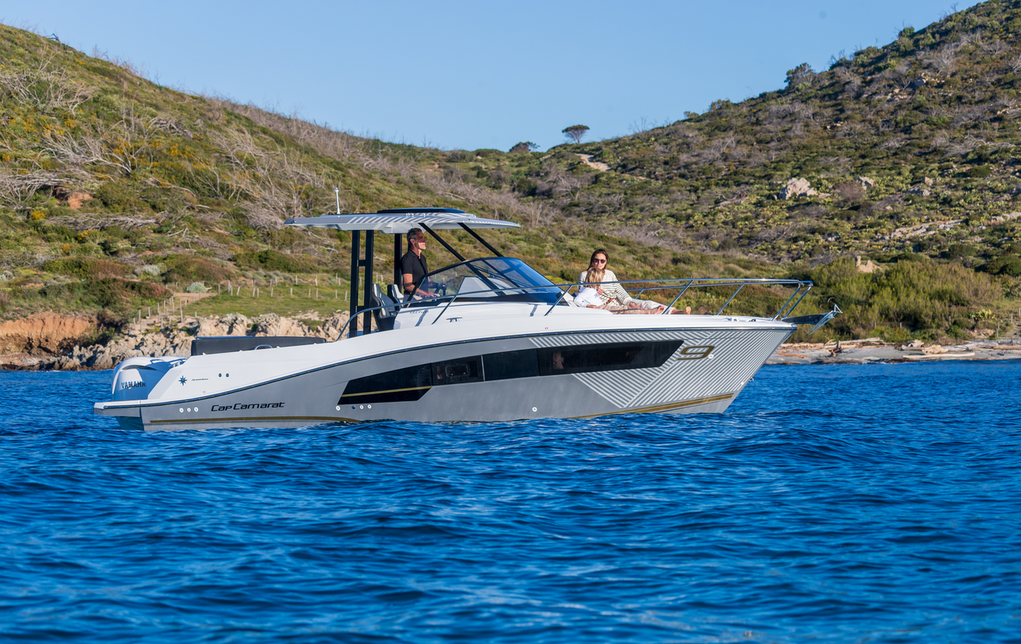 Cap Camarat 9.0 WA representerar en elegant och kraftfull utveckling inom Walk Around-segmentet. Den har hämtat inspiration från linjens större flaggskepp och är designad för att erbjuda oöverträffad komfort under längre utflykter – oavsett om det handlar om en dagstur, en weekend, eller längre.